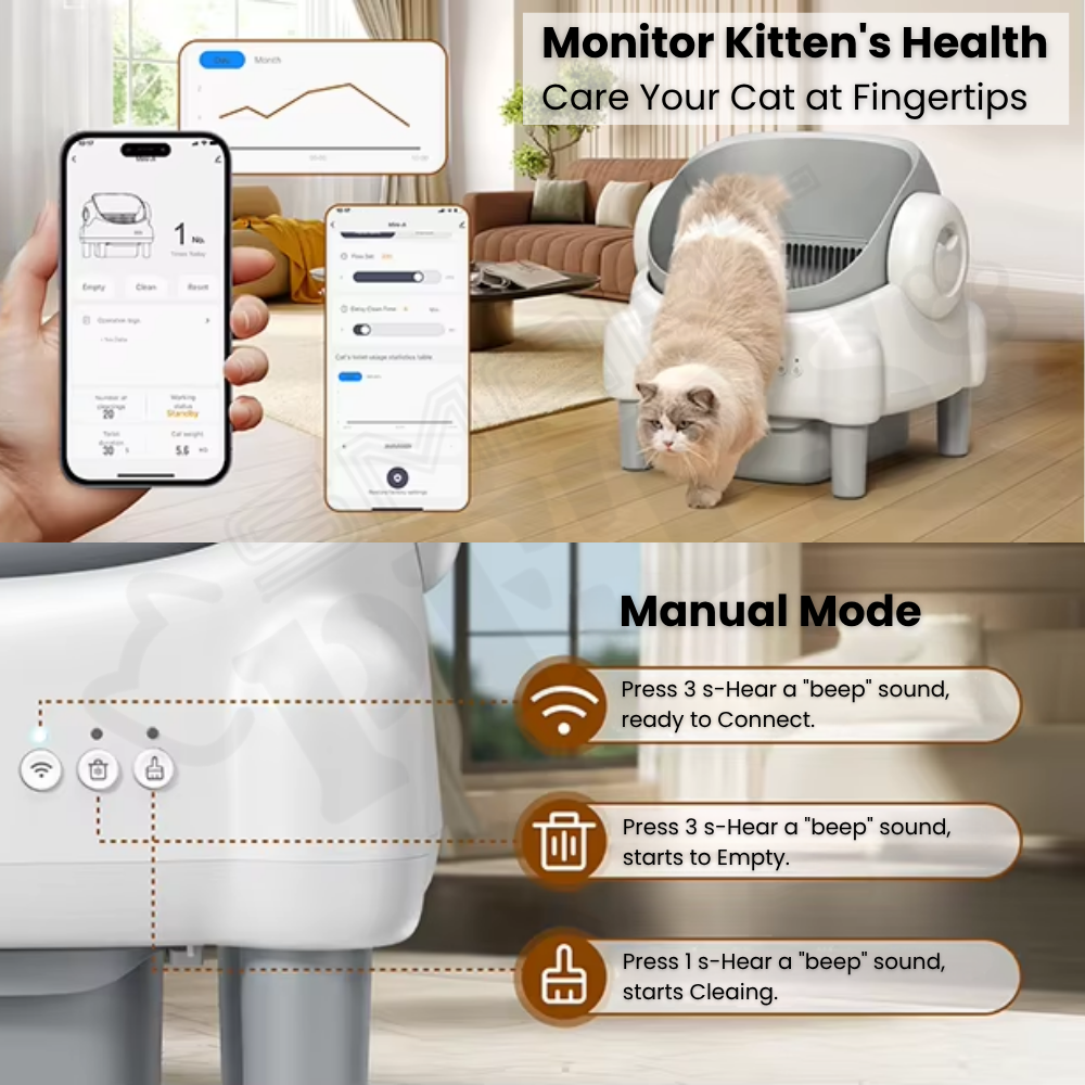 Features: Easy to Clean, Large Capacity, Automatic Cleaning, Odor Control, Multi-level Anti-Pinch Safety, Remote Control via Mobile App